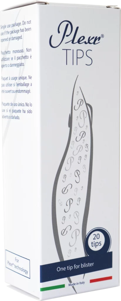 Les Plexr Tips sont des embouts applicateurs jetables en acier inoxydable médical, conditionnés stériles et destinés à être utilisés une seule fois. Ils constituent le consommable critique du système Plexr : c’est la pointe qui permet la création contrôlée du micro-arc plasma entre l’électrode et la peau. La géométrie du tip détermine la taille du point traité, la précision et la qualité du résultat clinique.